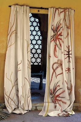 Definitely a mix! I love the coral curtains from Anthropologie but I prefer the Octupus/Sea horse pillows from Pottery Barn.